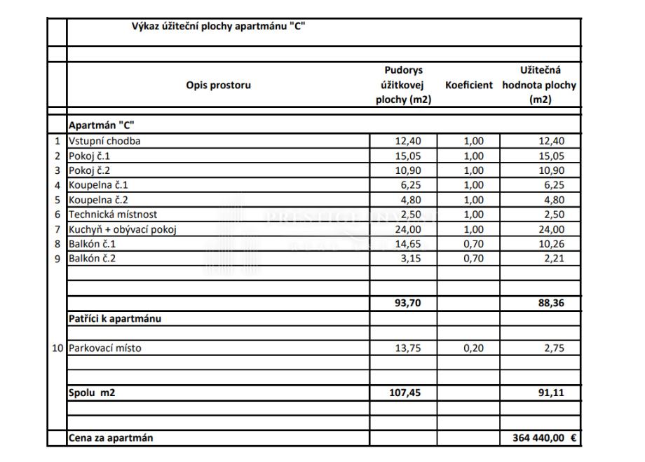 Površina apartmana: 107,45 m² (uključuje stambeni dio i balkone)