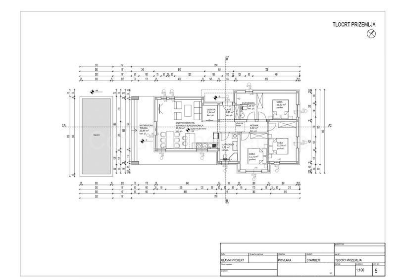 Prodaje se prizemnica u roh-bau fazi površine 98,58 m², te planiranim bazenom od 24 m². Objekt je smješten na zemljištu površine 446 m² na mirnoj lokaciji, idealnoj za izgradnju moderne obiteljske kuće ili kuće za odmor.