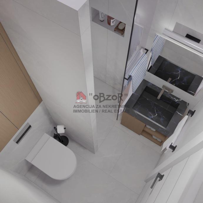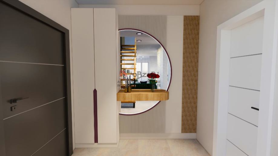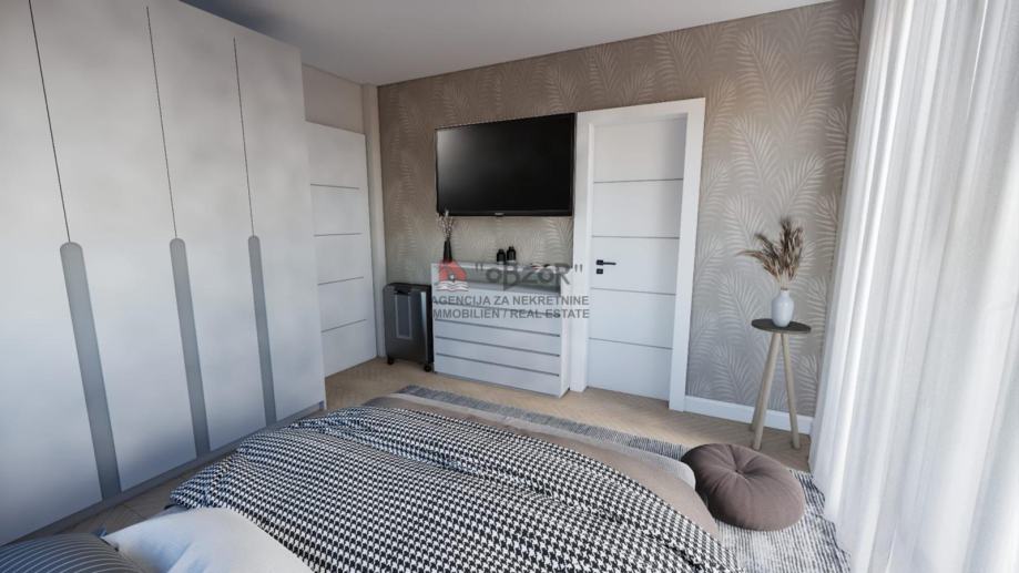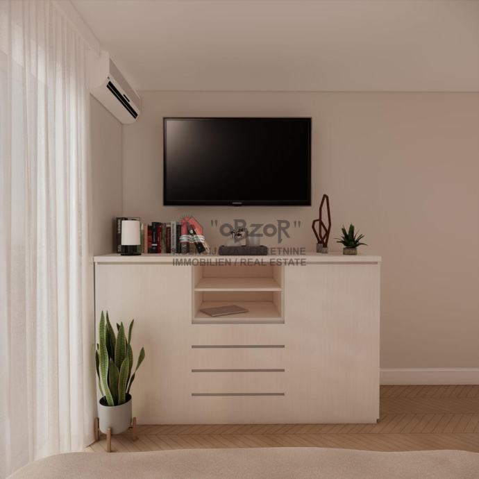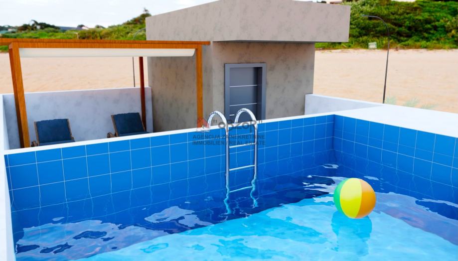 Kuća se ističe svojom mirnom lokacijom i blizinom mora, nudeći prekrasan pogled na more iz mnogih dijelova. Zahvaljujući orijentaciji prema sjeveru i jugu, prostorije su prozračne i dobro osvijetljene tijekom cijele godine. Vanjski prostor uključuje prostrano dvorište i terasu, savršene za opuštanje i uživanje u sunčanim danima. Na raspolaganju je i bazen na krovnoj terasi koji dodatno obogaćuje životni prostor, pružajući luksuzan osjećaj svakodnevnog odmora.