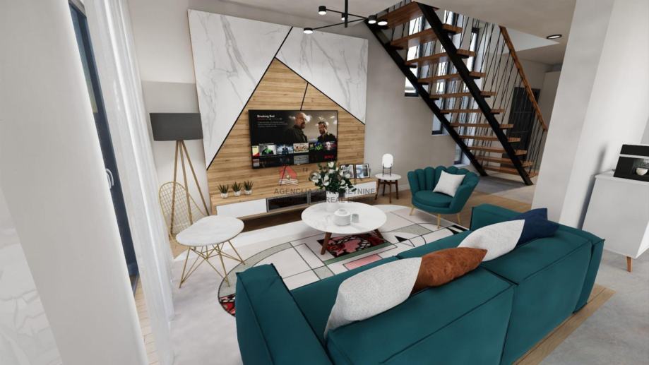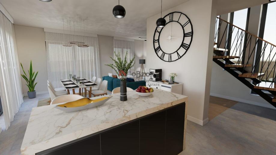 Prodaje se moderna dvojna kuća s bazenom, smještena u mjestu Sabunike - Privlaka. Stambena površine od 140 m2 se sastoji od prizemlja, kata i krovne terase s bazenom. PRIZEMLJE se sastoji od kuhinje s blagavaonom i dnevnim boravkom, toaleta i unutarnjeg stepeništa koje omogućije pristup katu. KAT se sastoji od tri spavaće sobe, dvije kupaonice i unutarnjeg stepeništa koje omogućije pristup krovnoj terasi s bazenom. Ova nekretnina pruža savršenu kombinaciju suvremenog dizajna i funkcionalnosti, s tri prostrane spavaće sobe.