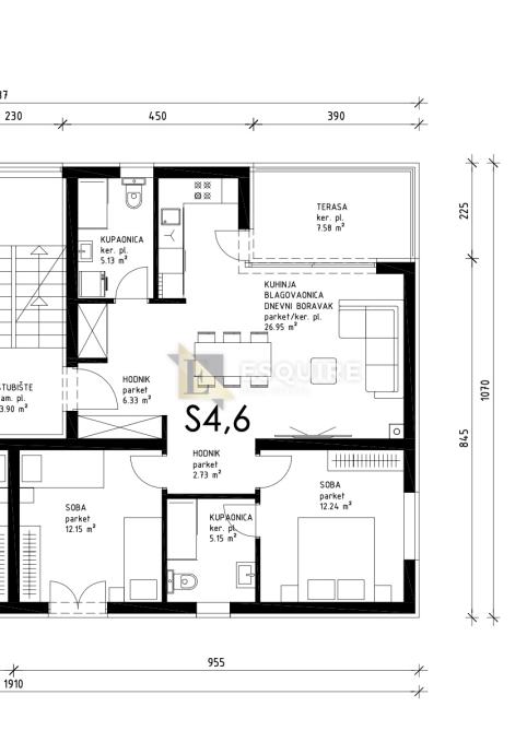 Kuhinja + blagovaonica + dnevni boravak – 26,95 m²