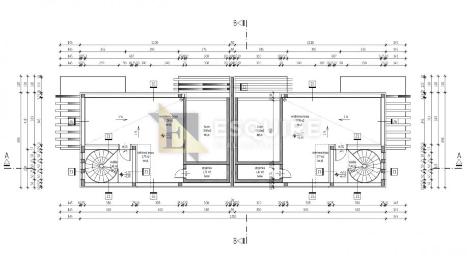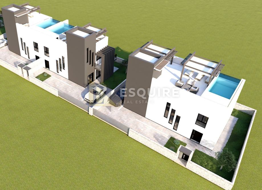 Posebna prednost ove nekretnine su krovne terase s bazenima, s kojih se pruža otvoren pogled na more i Velebit, stvarajući savršeno okruženje za luksuzni boravak i maksimalnu privatnost gostiju ili vlasnika. Iz prizemlja svake vile izlazi se na vlastitu vanjsku terasu, idealnu za boravak na otvorenom.