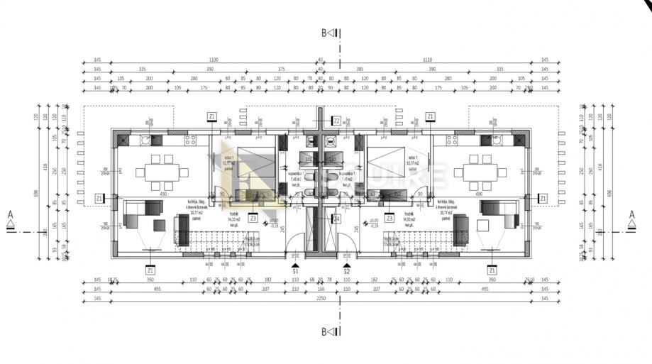 Predmet prodaje je cijela duplex kuća koja se sastoji od dvije stambene jedinice (S1 i S2).