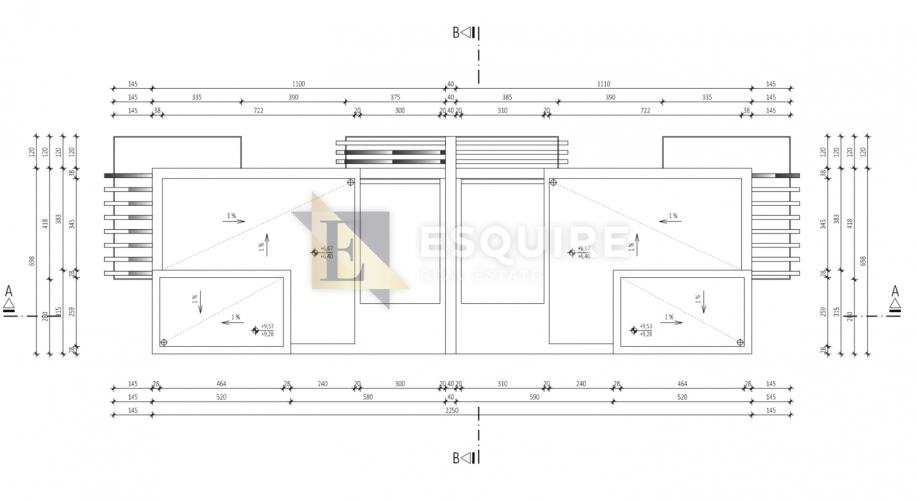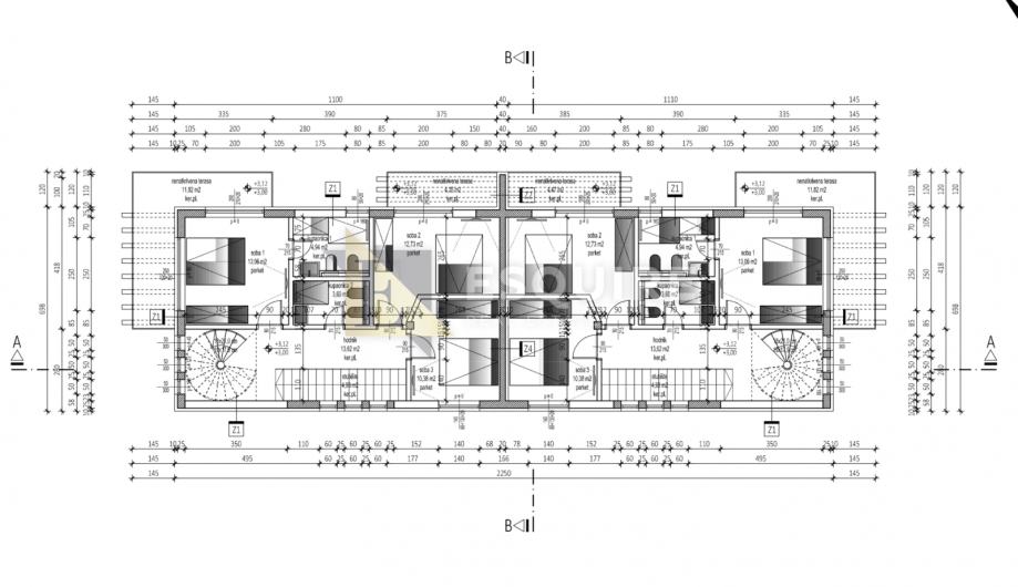 Svaka vila ima neto korisnu površinu od cca 149 m², dok ukupna neto površina objekta iznosi cca 298 m², a ukupna bruto površina 371,88 m². Obje jedinice raspoređene su na dvije etaže i krovnu terasu, uz funkcionalan i suvremen raspored prostorija.