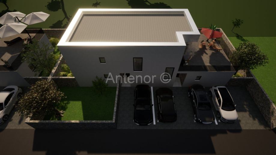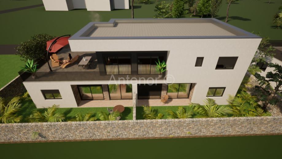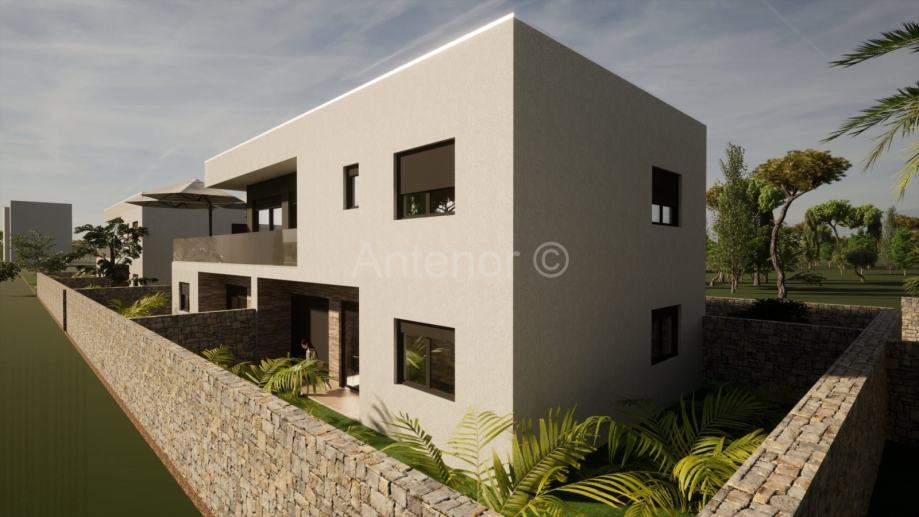 PRIVLAKA/SABUNIKE - građevinsko zemljište 413 m2 sa provomoćnom dozvolom i projektnom dokumentacijom za izgradnju stambene zgrade s tri stambene jedinice. Na terenu je napravljena temeljna ploča sa postavljenim instalacijama. Prema projektu radi se o stambenoj zgradi s tri stambene jedinice: dva apartmana u prizemlju i jedan apartman na katu površine 93,30 m2. Zemljište je pravokutnog oblika, dimenzija cca 26 m x 16 m s kojeg se pruža pogled na more. Od mora i plaže udaljenost je oko 700 m.
