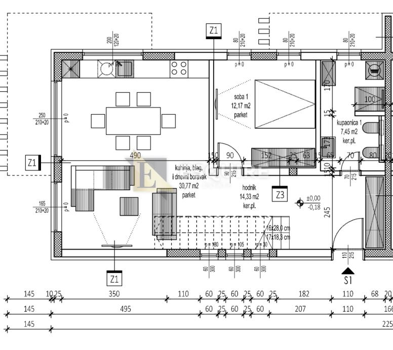 *Prizemlje obuhvaća ulazni hodnik, prostran open-space dnevni dio s kuhinjom i blagovaonicom, jednu spavaću sobu te kupaonicu.