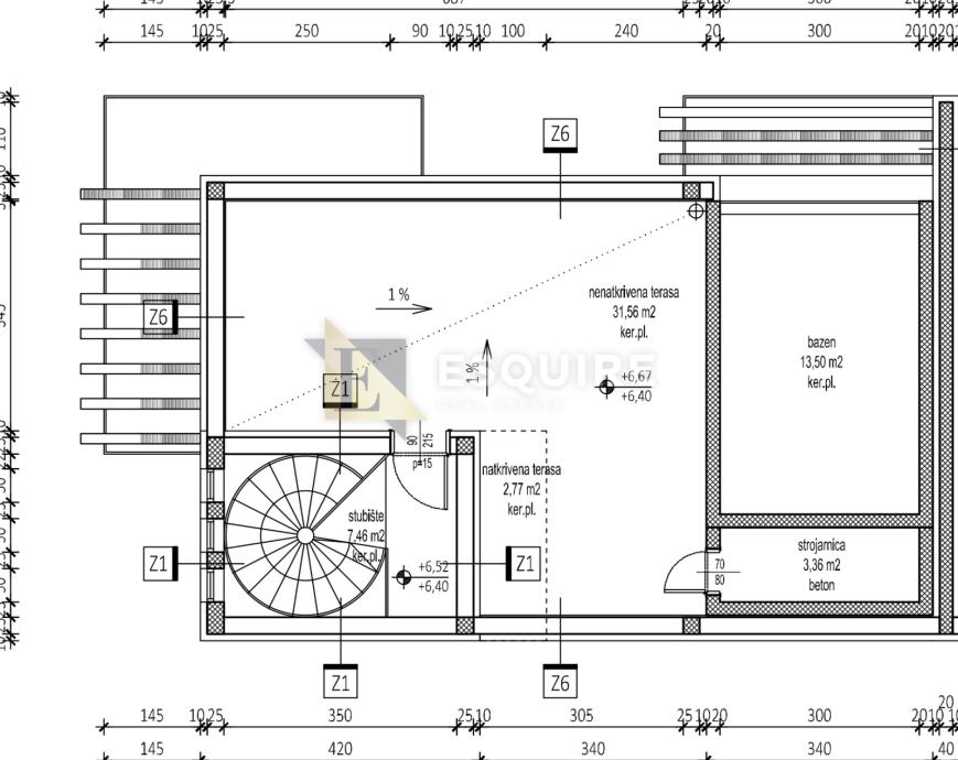*Krovna etaža rezervirana je za terasu s bazenom, djelomično natkriveni dio za boravak te stubište.