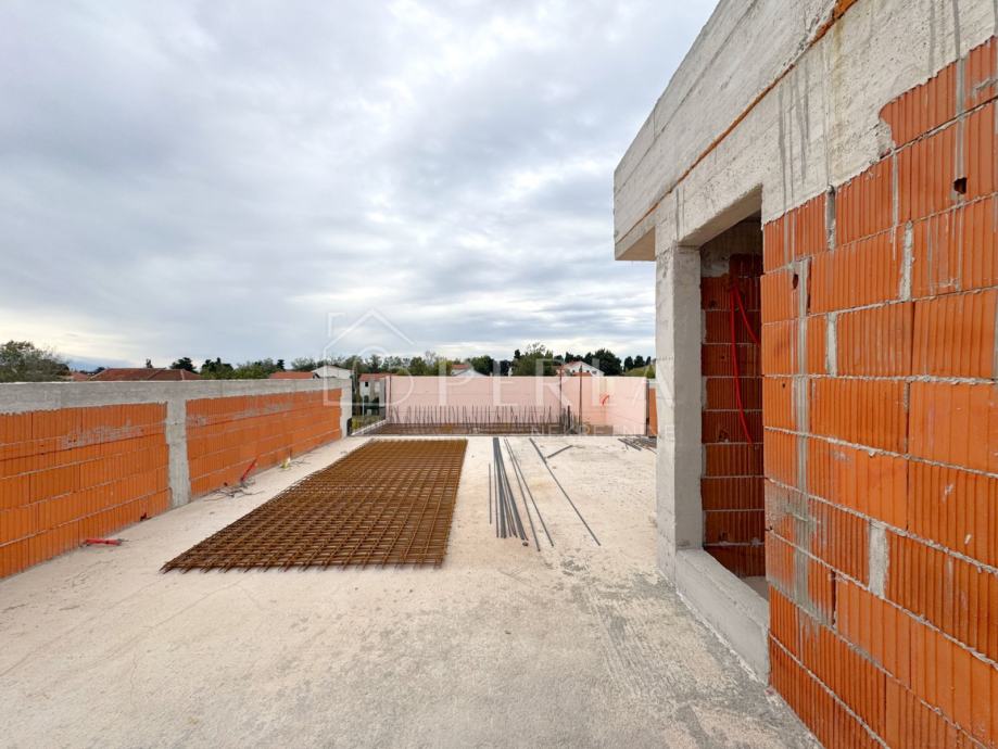 Posebna prednost nekretnine je prostrana krovna terasa s privatnim bazenom s koje se pruža panoramski pogled na more i planinu Velebit – savršeno mjesto za opuštanje uz zalazak sunca.