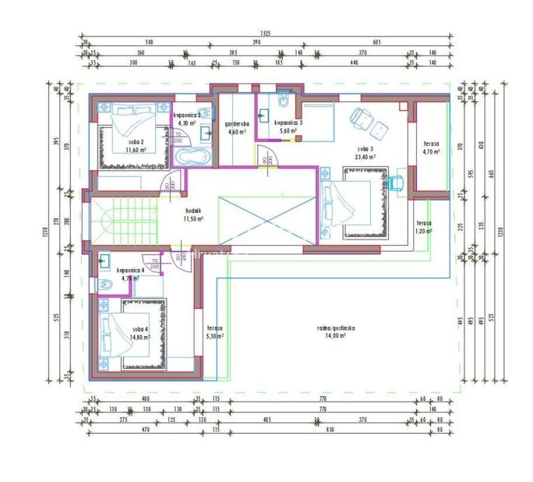 - Glavna spavaća soba s privatnom kupaonicom i garderobom (35,60 m2)