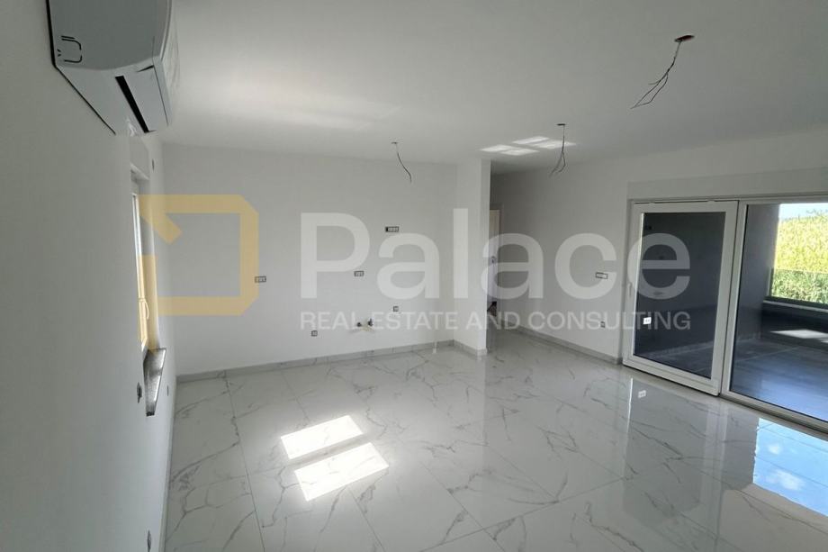 U interijeru je posebna pažnja posvećena kvaliteti i modernom dizajnu. Na podovima u kuhinji, dnevnom boravku i na terasi postavljene su keramičke pločice prve klase, dok su u spavaćim sobama ugrađene kvalitetne SPC podne obloge. PVC stolarija antracit boje s vanjske strane i bijele s unutarnje ima troslojno staklo, a svi prozori i klizne stijene opremljeni su električnim roletama i komarnicima.