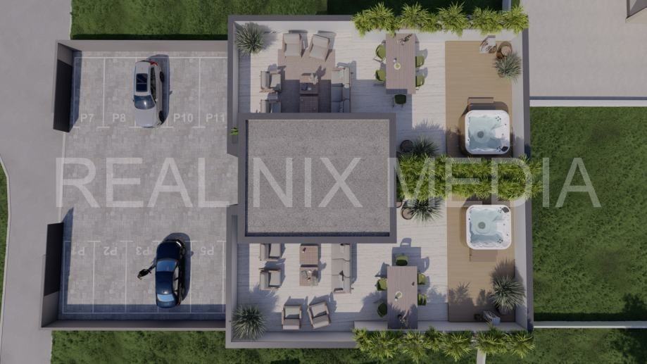 Krovna terasa predstavlja poseban luksuz — savršena je za jacuzzi, lounge zonu, sunčalište ili ljetnu kuhinju, a izdvaja ovaj apartman kao nekretninu visoke kategorije.