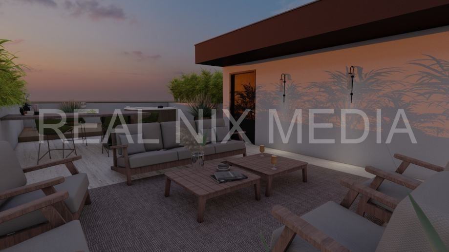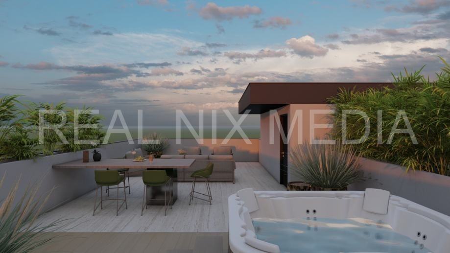 krovne terase površine 83 m², savršene za jacuzzi, sunčalište, ljetnu kuhinju ili lounge zonu