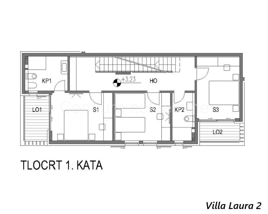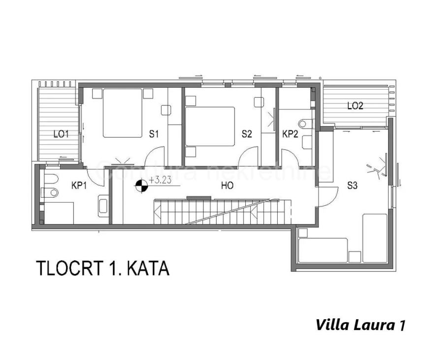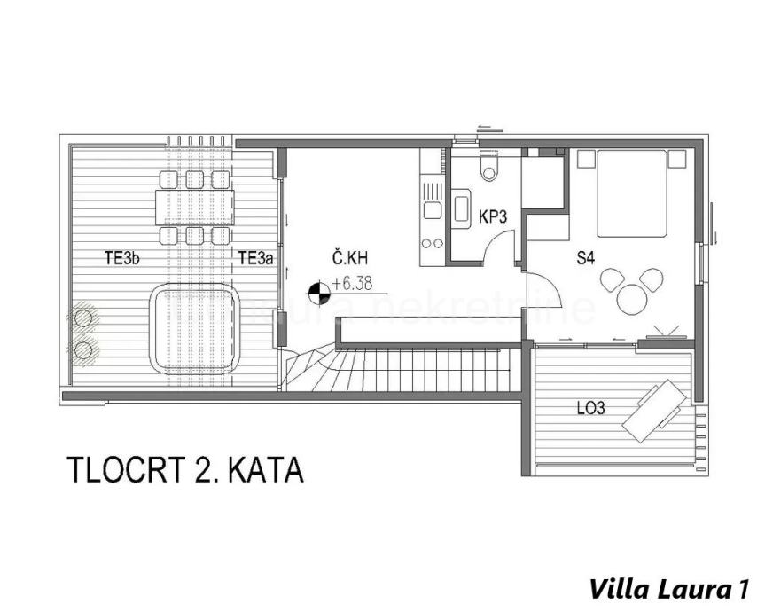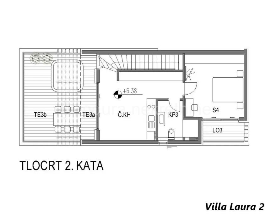 Villa 'Laura 2' neto površine s pripadcima 250,81 m2 rasprostire se na tri etaže - prizemlje, 1. kat i 2. kat.