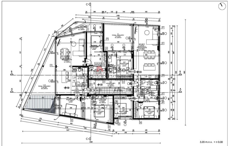Površine stambene jedinice su u priloženom nacrtu. Stambena zgrada ima sveukupno 9 apartmana. Izgradnja je tijeku a planirani završetak je do kraja 06/2025.
