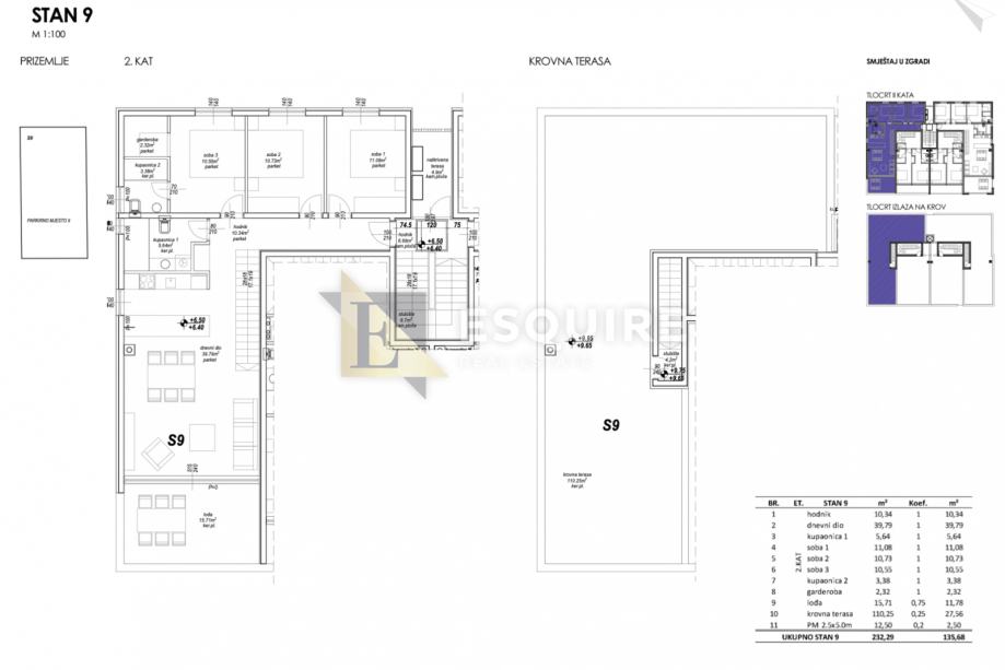 Ukupno stambeni prostor iznosi: 232,29 m2.
