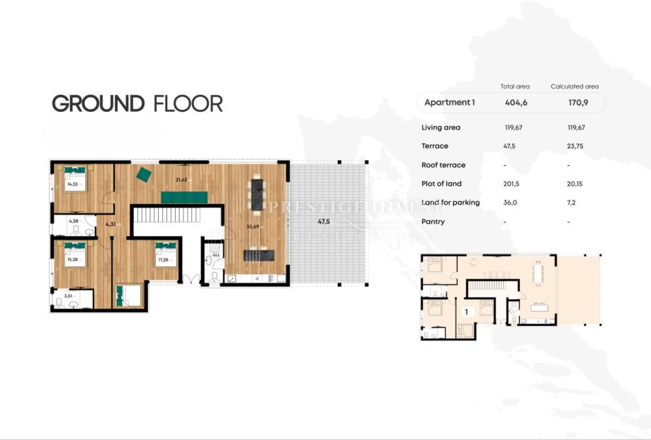 Ukupna neto površina: 170,9 m² (obračunska površina)