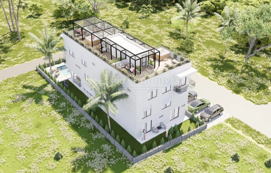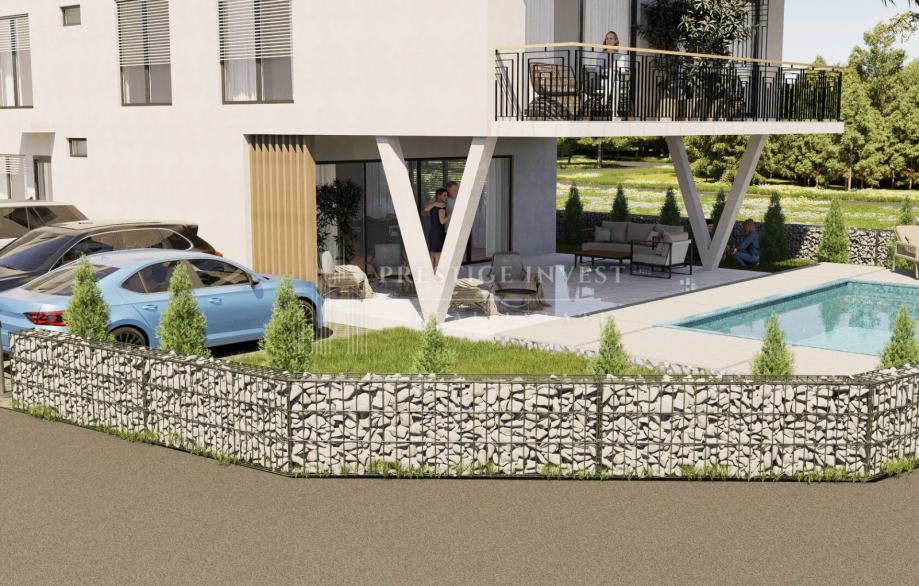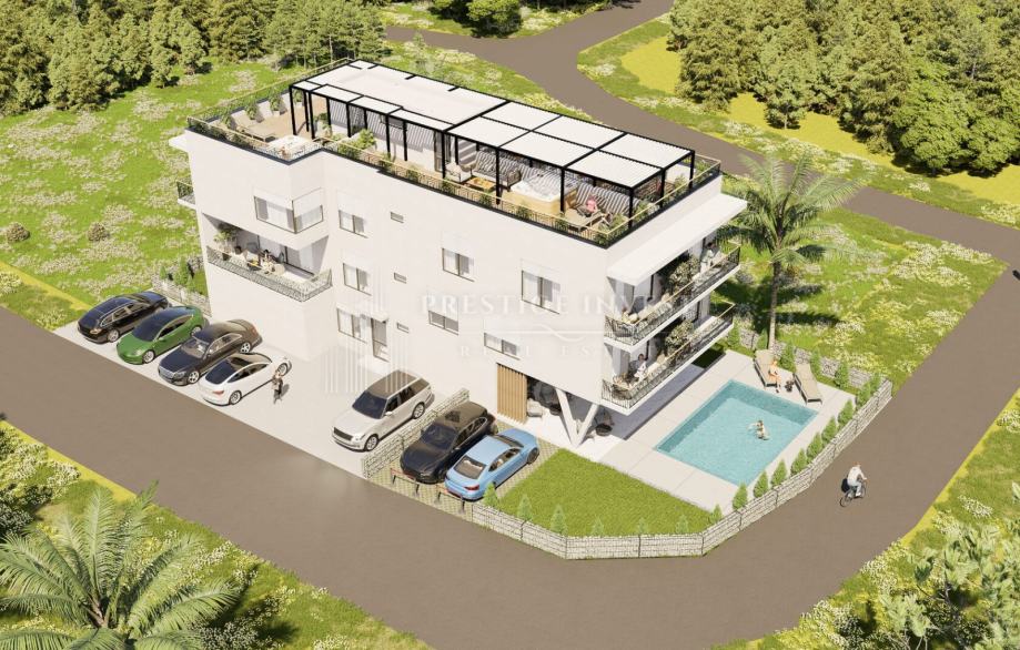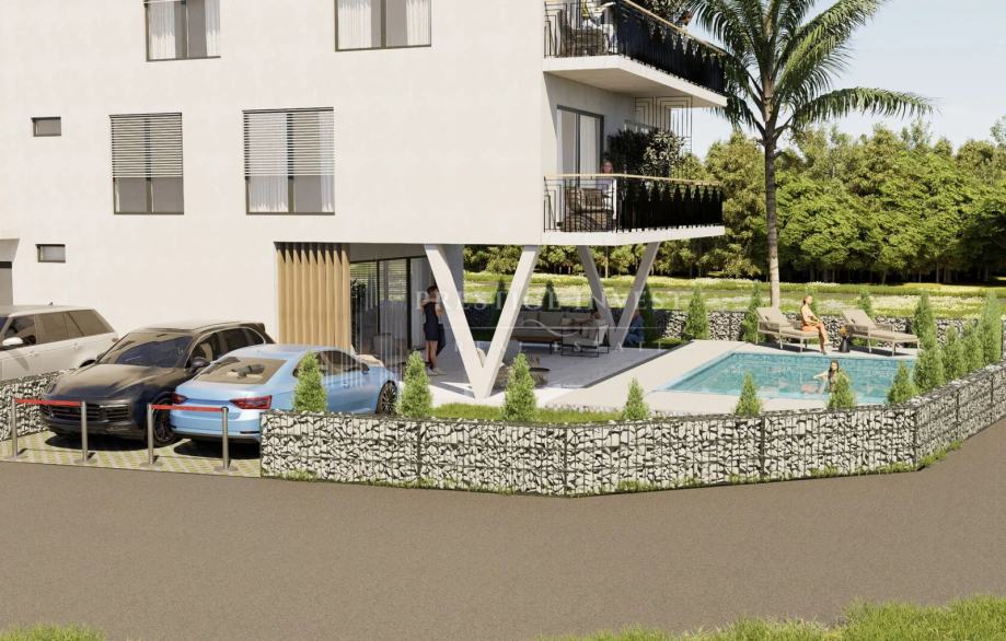 PRIVLAKA- Trosoban stan 1 u prizemlju s bazenom -140m od plaže (prodaja)