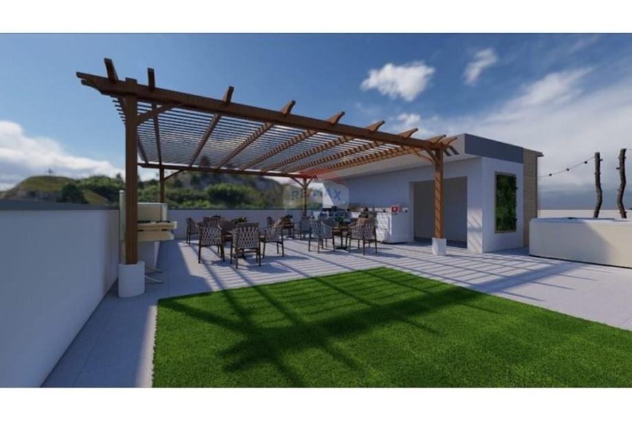 Zajednička krovna terasa od 250 m2 s ljetnom kuhinjom, grill zonom, loungeom i jacuzzijem podiže vrijednost i doživljaj boravka. Etažirano, odvojeni priključci, parkiranje i dodatni prostor za vozila.