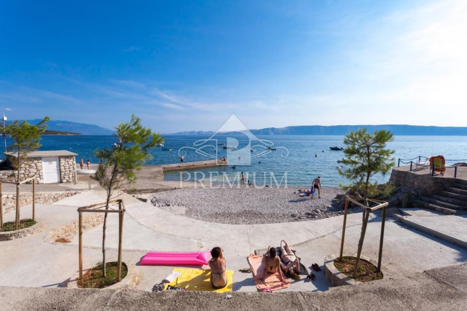 U malom mjestu udaljenom svega 7 km od Novog Vinodolskog prema jugu, u ponudi imamo veoma interesantnu kuću sa vrtom, odnosno prizemnicu čija bruto površina iznosi 80,20 m2. Udaljena je cca 35 m zračne linije od mora (drugi red kuća od obale) i nalazi se u slijepoj, tihoj i mirnoj ulici koja je asfaltirana i opremljena svom potrebnom infrastrukturom. Kuća se sastoji od dnevnog boravka sa kuhinjom, ostavom, halom, dvije spavaće sobe i kupaone. U objektu se nalazi klima uređaj, trofazna struja. Visina stropova je 3.0 m. Betonska ploča iznad objekta je visestruko toplinski i odlično vodootporno izolirana. Svi podovi su u keramičkim pločicama. Bočnim stepenicama izvana se dolazi na gornju terasu i vrt Iznad samog objekta je velika terasa od 75 m2, a sa južne strane objekta nalazi se vrt u kojem se nalazi velika smokva koja natkriva cijeli prostor, tu su voda i tuš, u vrtu se najviše boravi i odmara. Sa cijele susjedne-sjeverne strane je zelenilo i velika stabla koja prave hladovinu.