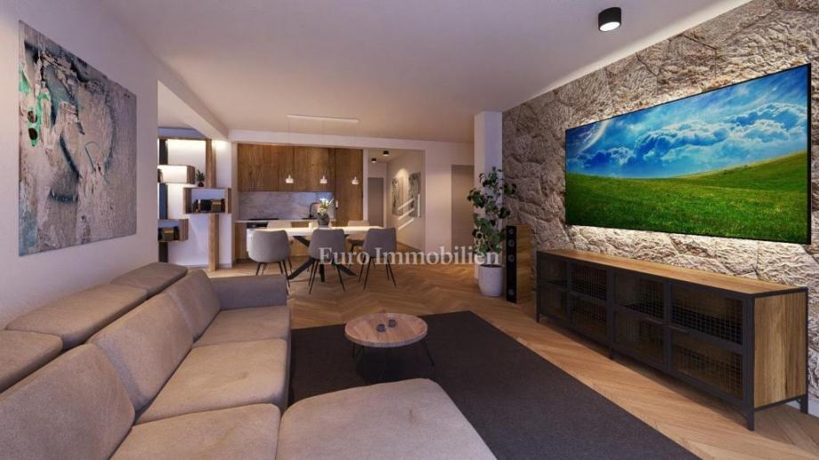 Stan će biti opremljen podnim grijanjem, kompletno klimatizitan a pripadati će mu i vanjsko parkirno mjesto. Stanu će pripadati i okućnica od 70m2.