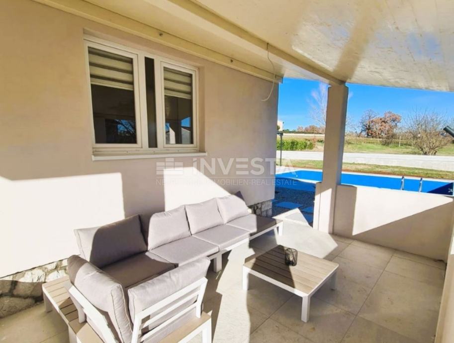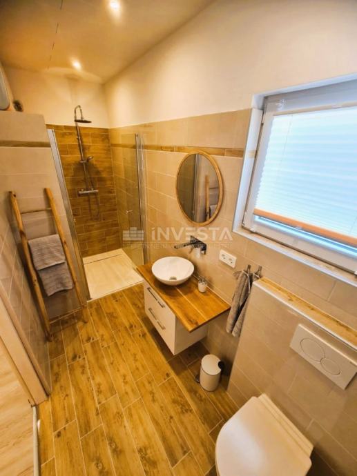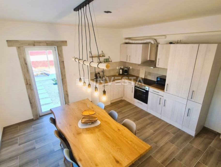 Nekretnina je nedavno, 2023. godine, u potpunosti renovirana koristeći visokokvalitetne materijale, što joj daje moderan i sofisticiran izgled. Već na prvi pogled oduševljava prostranim, pažljivo uređenim i ograđenim vanjskim prostorom koji pruža privatnost i ugodu.