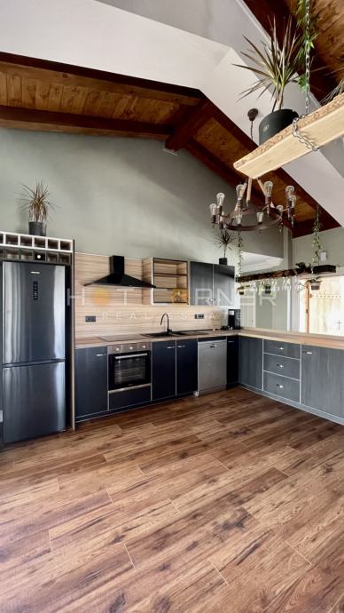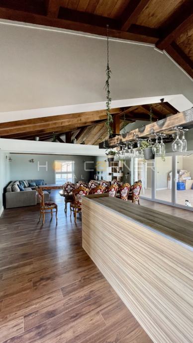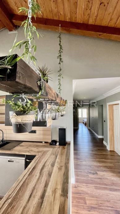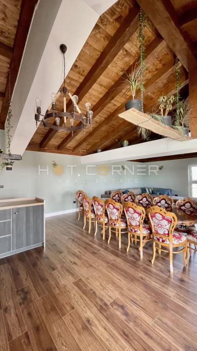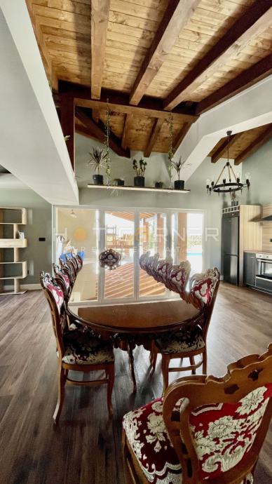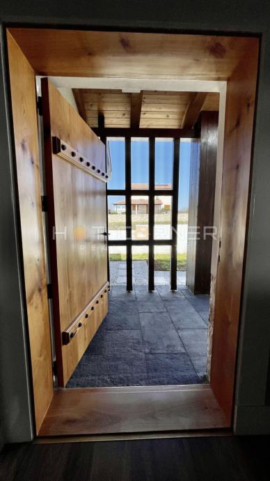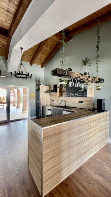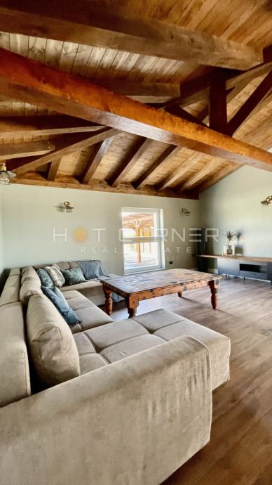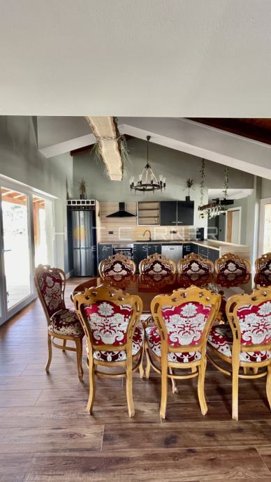 Na parceli ukupne površine 1572m2 vila prizemnica površine 250m2, vrlo kvalitetne izgradnje(cigla+beton, kvalitetna izolacija), s unikatnim drvenim ručno rađenim detaljima.