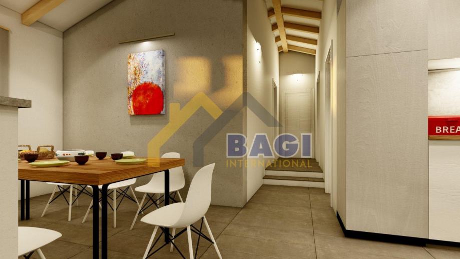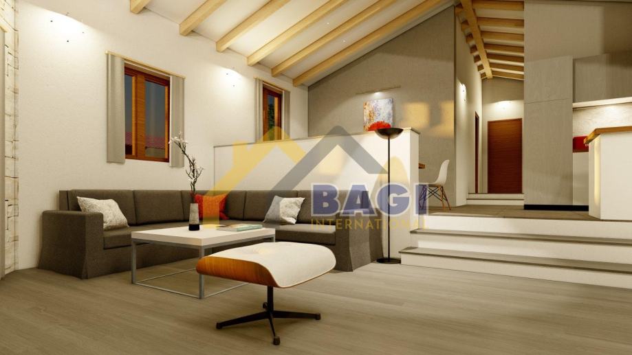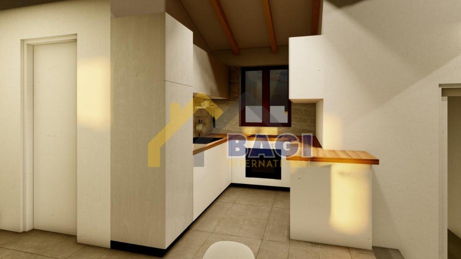Kuća se sastoji od ulaznog hodnika,dnevnog boravka sa kuhinjom i blagovaonom,