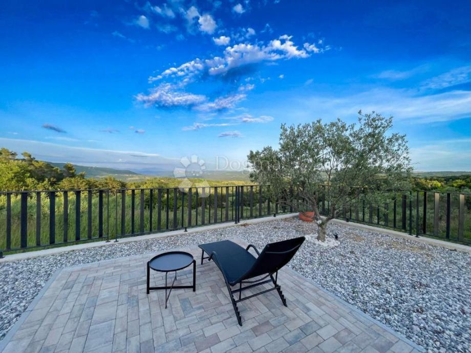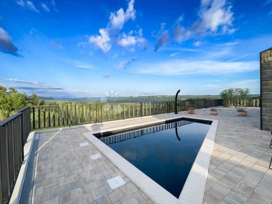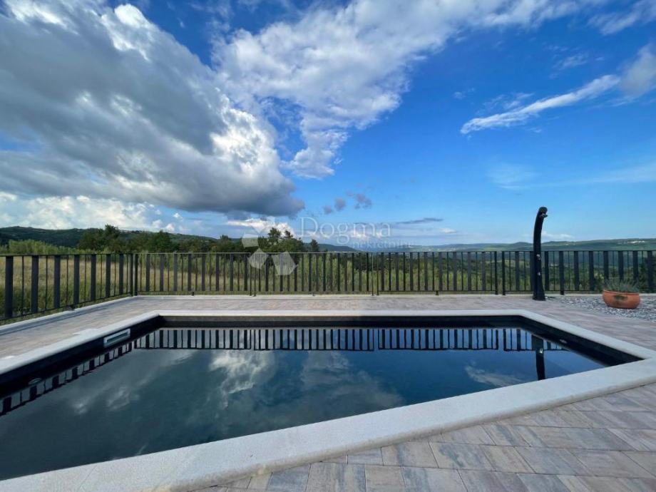 Kuća ukupne površine 145 m2, smještena u predivnom krajoliku s pogledom na Motovun i dolinu rijeke Mirne, nudi savršen spoj modernog komfora i istarskog šarma.