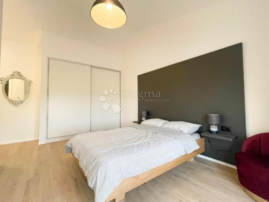 Unutrašnjost obuhvaća prostrani dnevni boravak s kuhinjom i blagovaonicom u otvorenom konceptu, dvije spavaće sobe s vlastitim kupaonicama i vešeraj s dodatnim WC-om za goste. Veliki prozori omogućuju obilje prirodne svjetlosti.