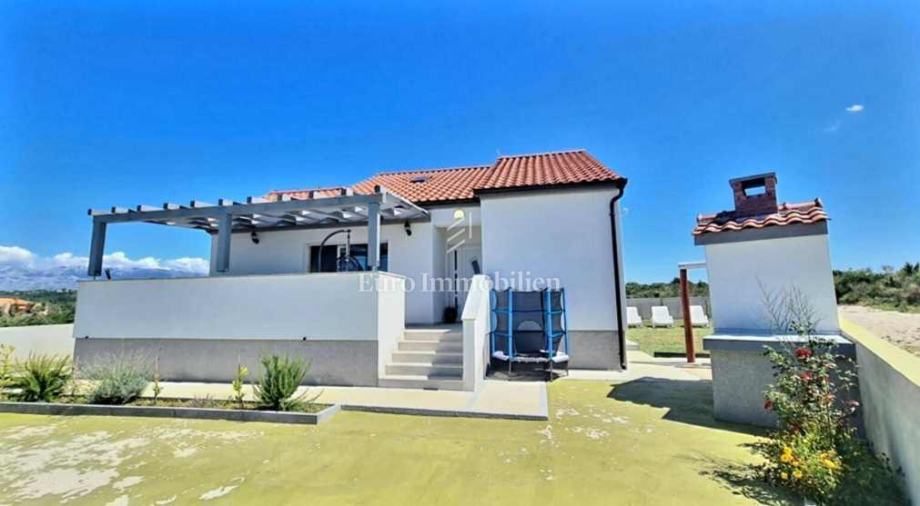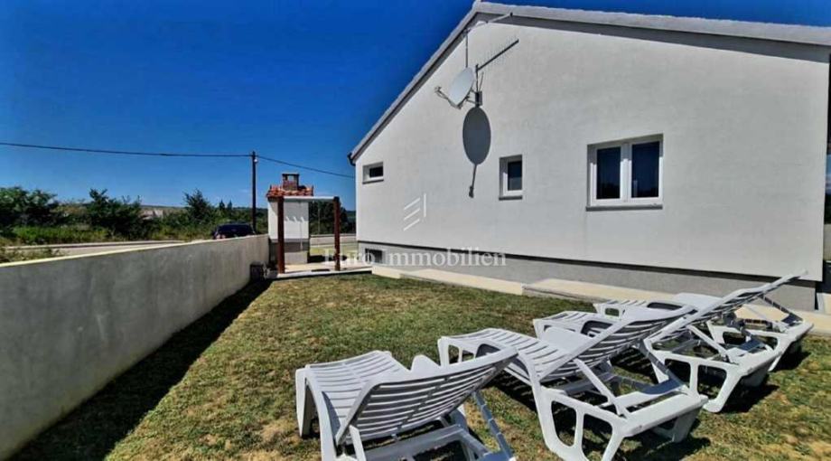 Kuća površine 115,96 m2 sagrađena je 2022. godine na zemljištu površine 471 m2, a proteže se na podrum i prizemlje. Prizemlje se sastoji se od ulaza, kupaonice, WC-a, kuhinje s blagovaonicom i dnevnim boravkom, hodnika, dvije spavaće sobe i nenatkrivene terase. Podrum se koristi kao prostor za rekreaciju. Pri gradnji su korišteni kvalitetni materijali i oprema, kao što je fasada sa termoizolacijom od stiropora debljine 10 cm, cigleni termo blokovi, podne obloge su laminat i pločice, prozori su PVC sa žaluzinama, a u dnevnom boravku i hodniku je postavljen klima uređaj. Prodaje se kompletno namještena. Odmah je useljiva!