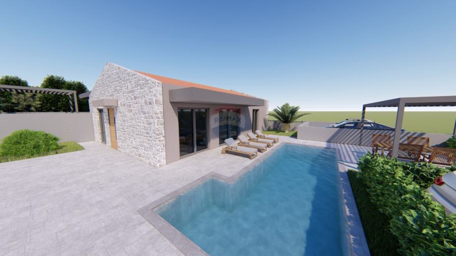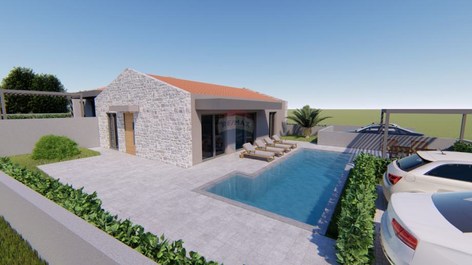 Na općini Vižinada krenula je izgradnja dvije prizemnice odličnog koncepta i pomno planiranog prostora. Cijela kuća bit će opremljena podnim električnim grijanjem, u sobama drveni podovi a u ostatku kuće kvalitetna keramika.Svaka kuća posjeduje vlastiti bazen površine 25m2 .