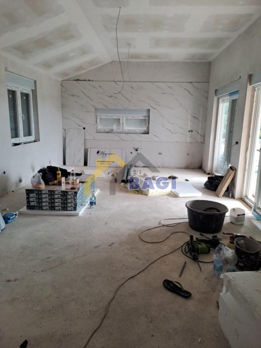 Prodaje se prizemnica s bazenom u mjestu u blizini Zadra, Vrsi. Prizemnica je u fazi gradnje, sastoji se od 2 spavaće sobe, 1 kupaonice, 1 wc, hodnika, dnevnog boravka spojednog s otvorenom kuhinjom i blagovaonicom. Iz dnevnog boravka se izlazi na natkrivenu terasu gdje je smješten i bazen. Kuća ima bruto površinu 90,7m2. Također uz prizemnicu dolazi i kuhinja po mjeri.