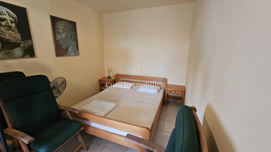 Stan se sastoji od jedne spavaće sobe, kupaonice, dnevnog boravka i kuhinje, a iz dnevnog boravka omogućen je izlaz na uređenu i ograđenu okućnicu koja pruža ugodan prostor za odmor i boravak na otvorenom.