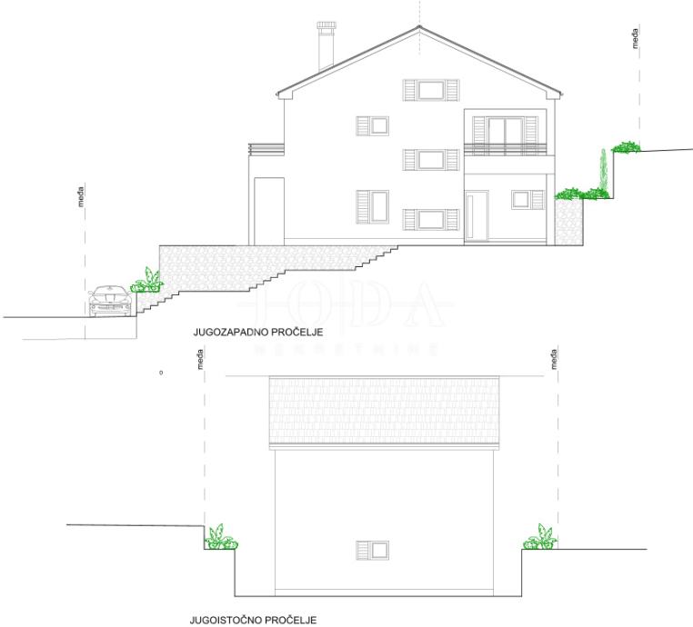 Na 50 metara od mora prodaje se građevinsko zemljište sa pravomoćnom građevinskom dozvolom za izgradnju obiteljske kuće.