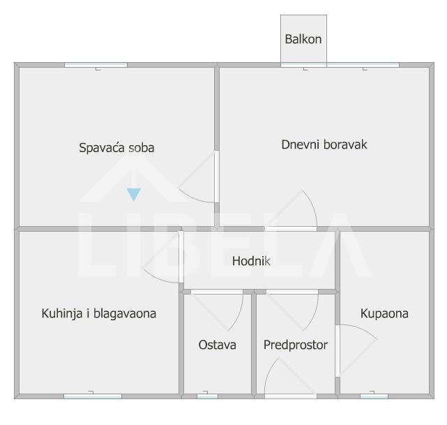 Prodaje se stan u starijoj zgradi na 2. katu (posljednji kat), ukupne površine 44 m². Stan se sastoji od hodnika, dnevnog boravka, blagovaonice, kuhinje, kupaonice, spavaće sobe i male lođe. Također, stanu pripada spremište u podrumu.