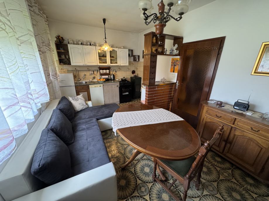 Prodaje se samostojeća kuća na parceli od cca 1202 m2. Kuća je izgrađena 1986. godine, sveukupno ima 110 m2 i okućnice 1202 m2 te se prodaje po cijeni od 240.000,00 €. Kuća se sastoji od hodnika,kuhinje,dnevnog boravka, 2 spavaće sobe,kupatila i posebno WC-a. Kuća ima tri terase i verandu. Krov je betonski, napravljen prije 10-ak godina. Kuća je u dobrom stanju. Prodaje se kompletno namještena. Vlasništvo je uredno. Za više informacija nazovite na broj 098 739 072.