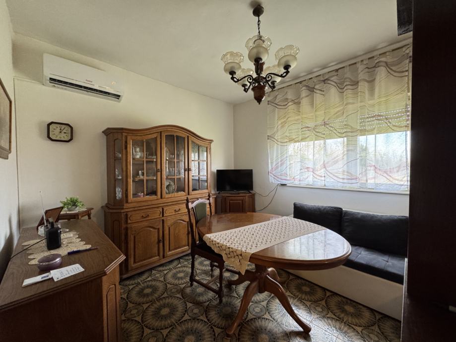 A house for sale on a land of approx. 1202 m². The house was built in 1986, has a total of 110 m² and a yard of 1202 m², and is being sold for €240,000. The house consists of a hallway, kitchen, living room, 2 bedrooms, a bathroom, and a separate toilet. It has three terraces and a veranda. The roof is made of concrete, renovated about 10 years ago. The house is in good condition. It is being sold fully furnished. Ownership is clear. For more information, please call 098 739 072.