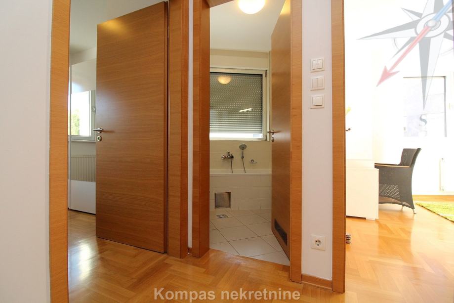Ima protuprovalna vrata, video portafon, klima uređaj, rolete na struju, mogućnost optičkog interneta.