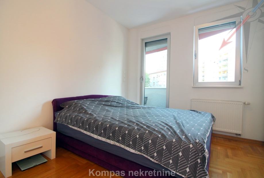 Dnevni boravak i jedna spavaća sobe imaju izlaz na loggiu ( 7,2 m2 ). Obračunska površina stana je 71,35 m2. Pričuva za stan je 30 eura. Mogućnost kupovine parkirnog mjesta ili garaže u podzemnoj garaži zgrade.