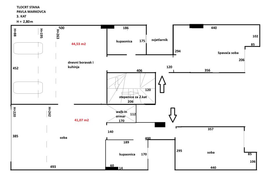 Prodaju se 3 stana po cca 40m2 spojena u jedan veliki dvoetažni 5-soban stan 125m2 u mirnoj ulici Pavla Markovca kod Kvatrića.
