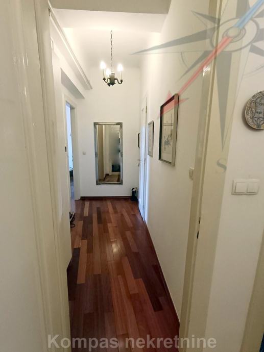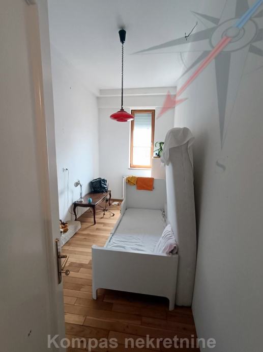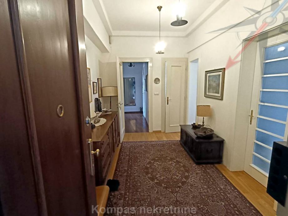 Stan se sastoji od dva hodnika, dnevnog boravka ( 55 m2 ), kuhinje, tri spavaće sobe, dvije kupaonice, toaleta, dva balkona od ukupno 19 m2. Obračunska površina stana je 138 m2. Grijanje je plinsko centralno, 2023. godine ugrađen je novi kondenzacijski bojler sa spremnikom vode. Kuhinja je rađena po narudžni, od mahagonija, sa kvalitetnim kućanskim aparatima. Stan ima posjed parkirnog mjesta, šupe na tavanu i šupe u podrumu zgrade ( nije još etažirano ). Odlična povezanost tramvajem prema svim dijelovima grada, blizina svih sadržaja strogog centra grada.