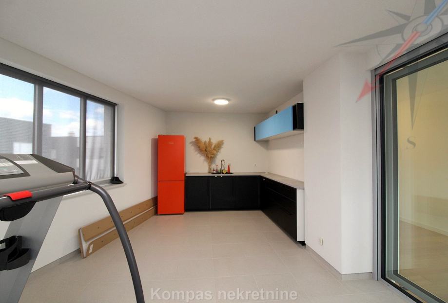 Oprema: protuprovalna vrata, video portafon, četiri inverter klima uređaj, optički internet, podno i centralno etažno grijanje preko gradske toplane, vlastita brojila izvan stana, troslojni parket, aluminijska stolarija s troslojnim izo staklom i aluminijskim roletama punjenim poliuretanom.