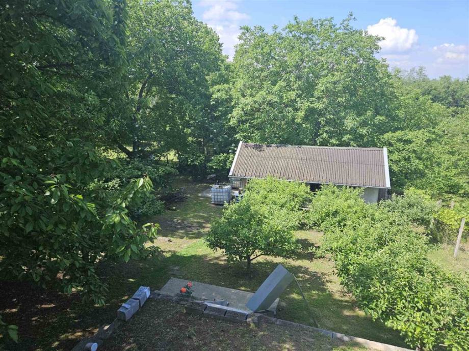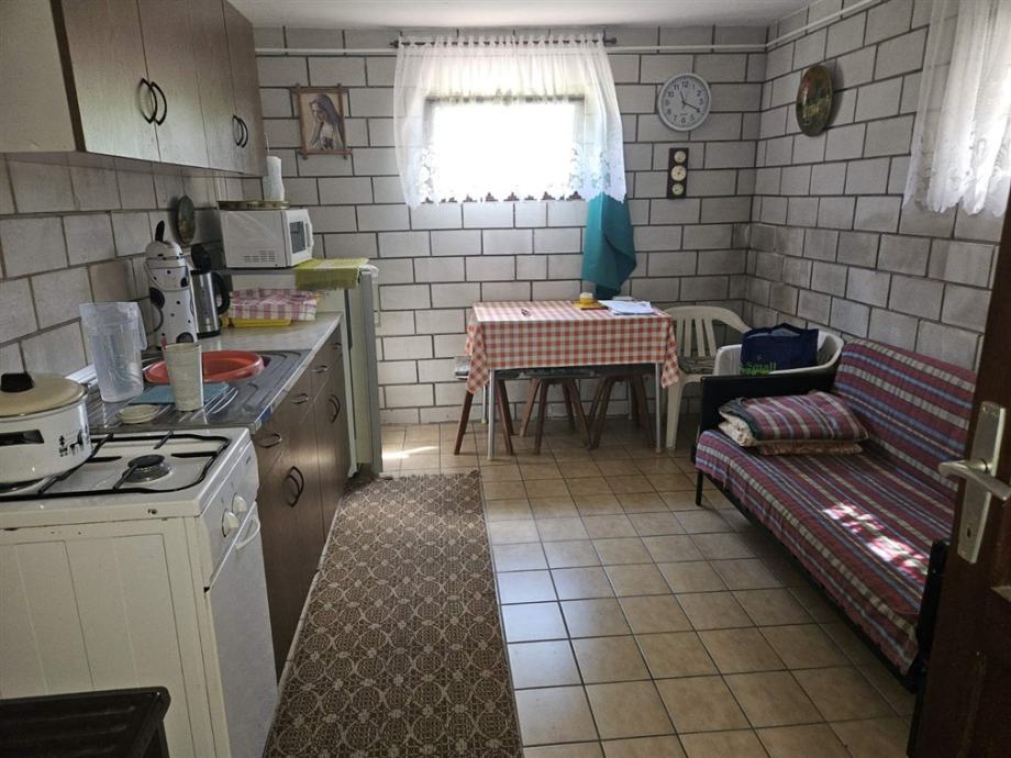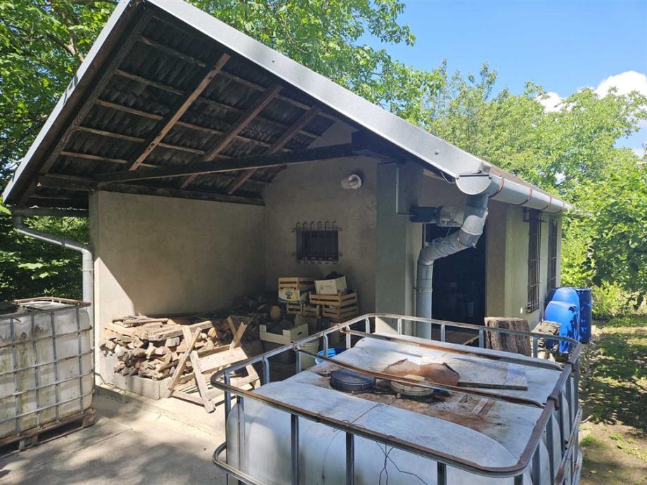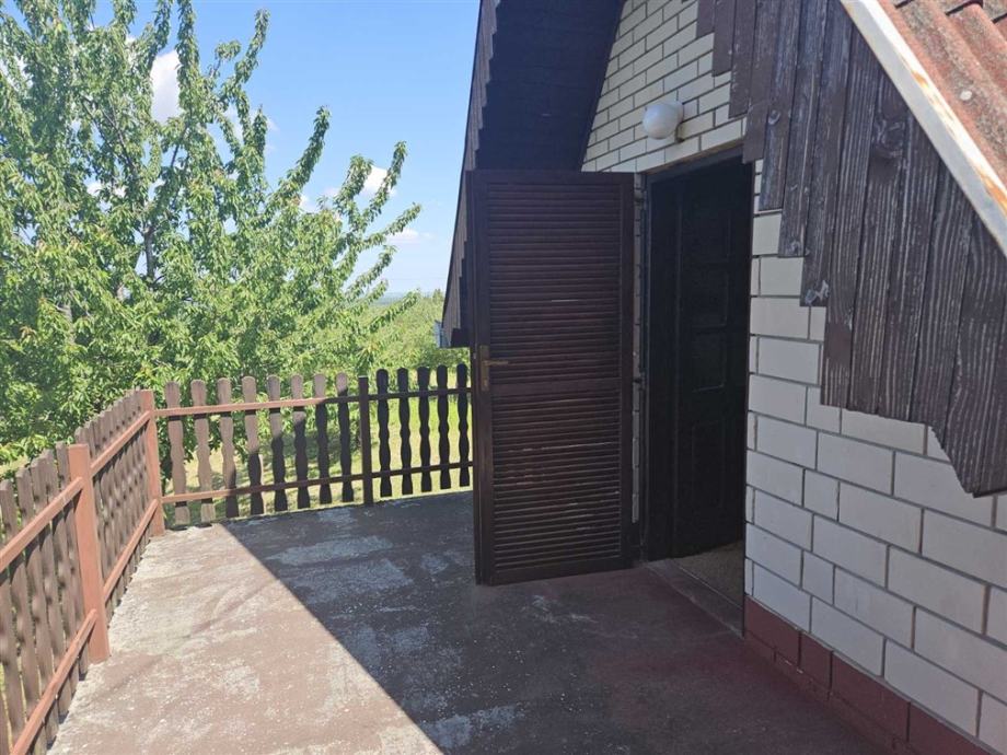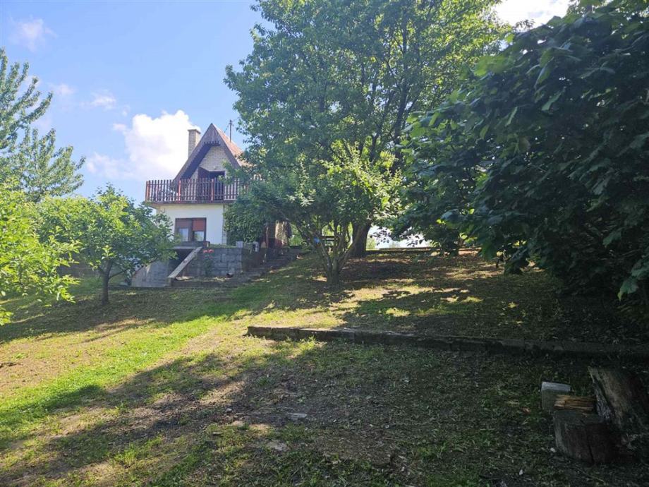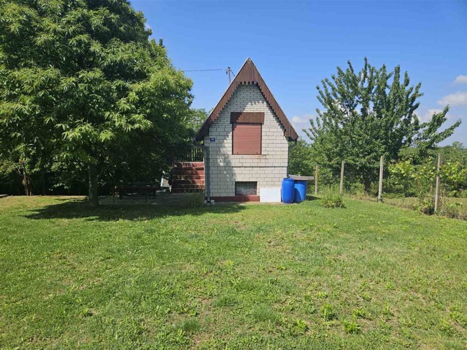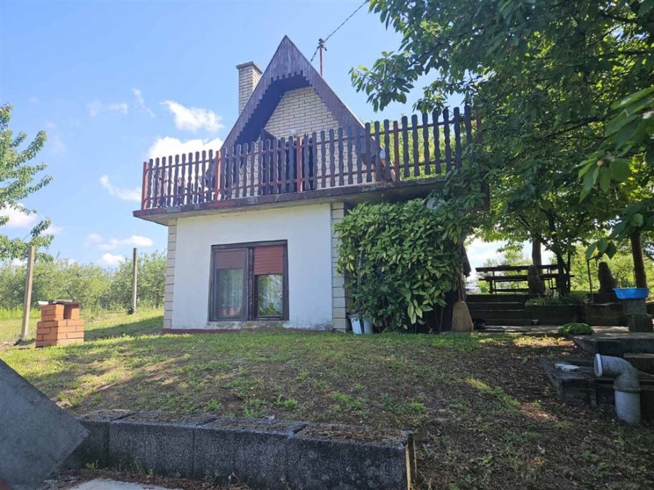 Vikendica u Aljamšu na zemljištu od površine od 2044m2. Sastoji se od podruma, prizemlja, potkrovlja i terase površine cca 60m2, te pomoćni objekt.