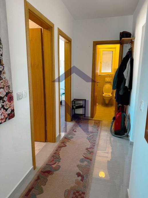 Apartman se sastoji od: ulaznog hodnika, odvojenog toaleta, kupaonice, spremišta, dvije spavaće sobe, dnevnog boravka s kuhinjom te terase.