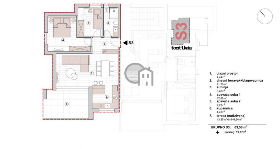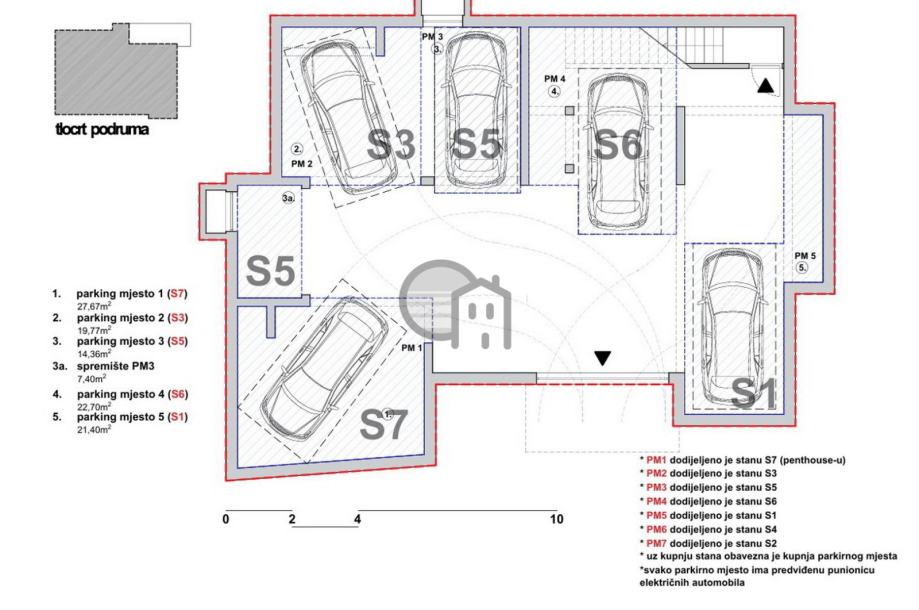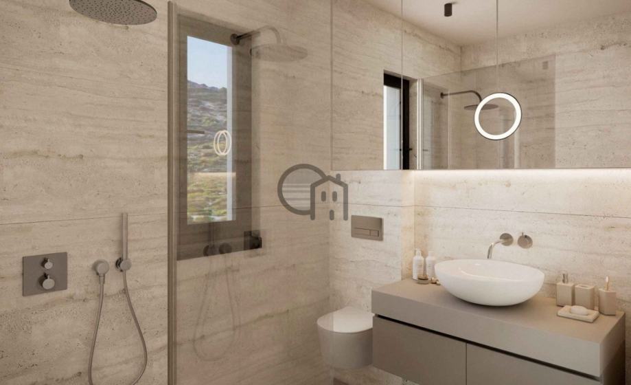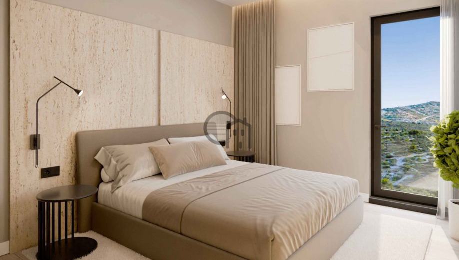 Primošten – Luksuzan apartman s velikom terasom i otvorenim pogledom na moreNa uzvišenoj i mirnoj lokaciji iznad Primoštena, s predivnim pogledom na more i okolni krajolik, smješten je moderno uređen apartman na prvom katu nove stambene zgrade. Objekt je projektiran prema visokim arhitektonskim standardima suvremenog stanovanja i nudi kombinaciju funkcionalnosti, kvalitete i estetike.Pozicija zgrade omogućava jednostavan pristup automobilom, a ujedno pruža dovoljno privatnosti zahvaljujući udaljenosti od gradskih gužvi i buke. Apartman zauzima ukupno 73,45 m² korisne površine te je orijentiran prema jugozapadu, što mu osigurava obilje dnevnog svjetla i prekrasne zalaske sunca.Raspored prostorija uključuje ulazni hodnik, dvije udobne spavaće sobe, moderno uređenu kupaonicu i otvoreni dnevni boravak s blagovaonicom i kuhinjom, iz kojeg se izlazi na prostranu terasu površine 13,87 m² – savršenu za uživanje u pogledu i opuštanju.Visoka razina opreme uključuje: podno grijanje, kvalitetnu aluminijsko-PVC stolariju s komarnicima i roletama na električne podizače, podne obloge od vrhunske keramike i prirodnog parketa. Apartmanu pripada i garažno parkirno mjesto veličine 19,77 m², opremljeno već ugrađenom punionicom za električna i hibridna vozila.Zgrada je trenutno u izgradnji, a završetak radova i mogućnost useljenja predviđeni su za ljeto 2026. Prva plaža udaljena je oko 1.250 m, dok se centar Primoštena nalazi na 1.800 m od objekta.