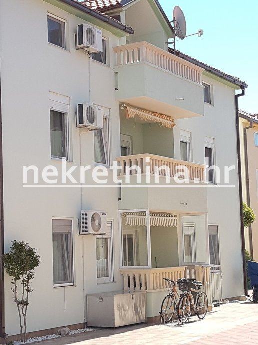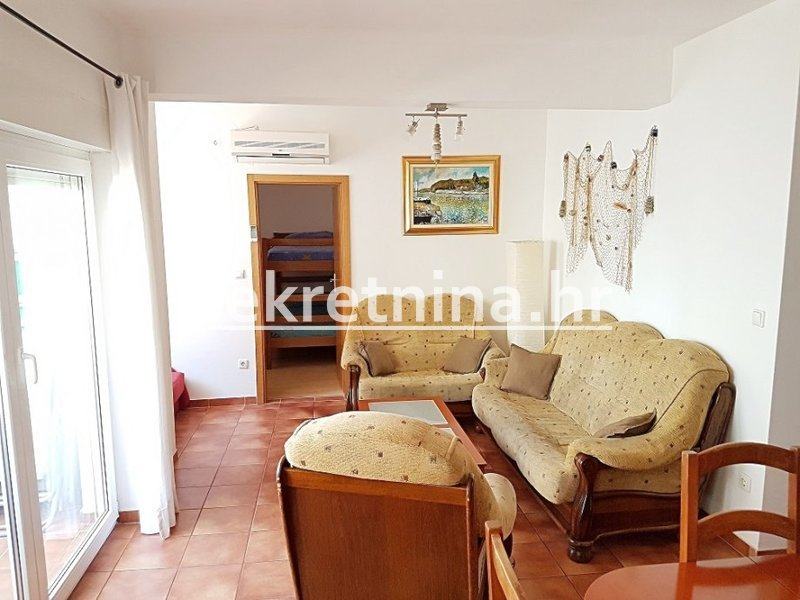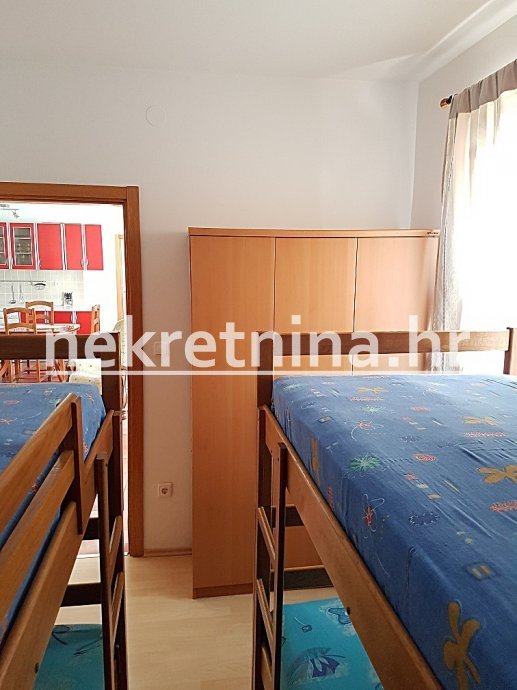 Stan je svježe okrecen i odmah useljiv. Zgrada sa stanom se nalazi u sklopu drugih 8 zgrada između kojih su plocice i cvijece. Oko cijelog kompleksa je ograda s lavandom. U dvoristu je na raspolaganju i kameni rostilj. O uređenju okolisa te samih zgrada brine domar koji je uvijek dostupan. Do mora je manje od 50 metara.