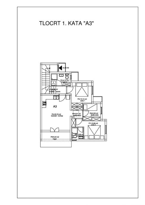 Apartman se nalazi na prvom katu objekta koji se sastoji od dvije jedinice dvojne stambene zgrade sa po tri apartmana u svakoj.