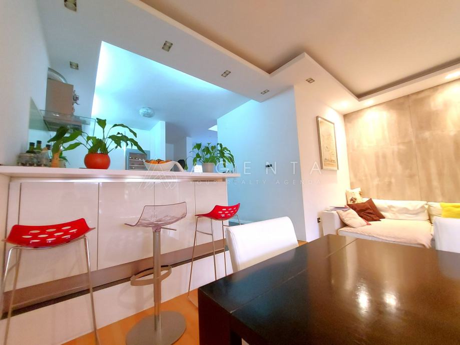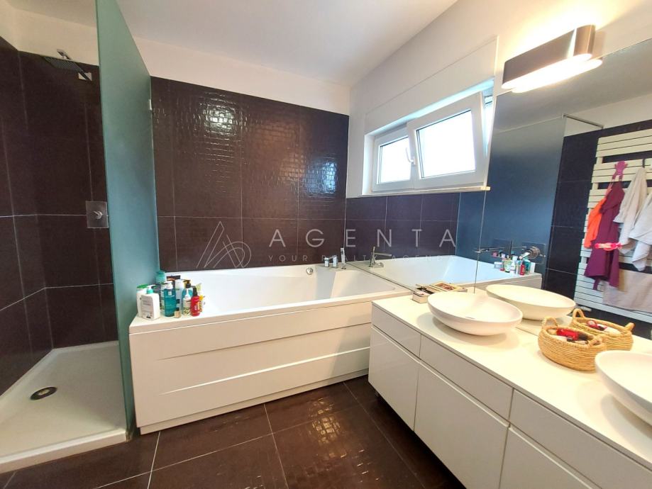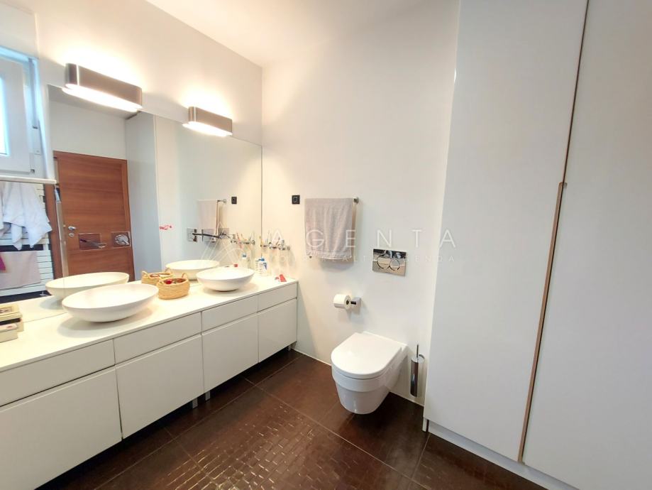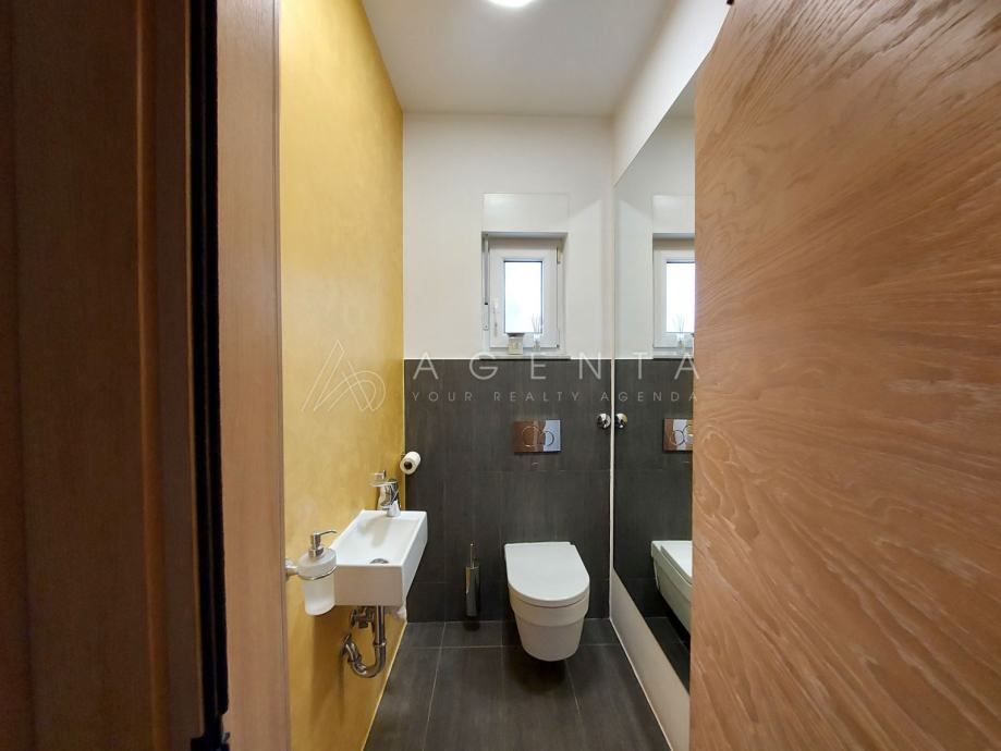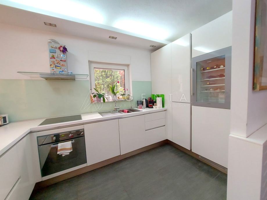 Uz kuću dolazi terasa površine 50 m² i prostrani vrt od 511 m², idealan za opuštanje u zelenilu. Nekretnina je klimatizirana, dok je u kupaonici i wc-u postavljeno podno grijanje. Konstrukcija kuće izrađena je od betona, a visina stropova iznosi tri metra, što prostoru daje osjećaj prozračnosti i elegancije.