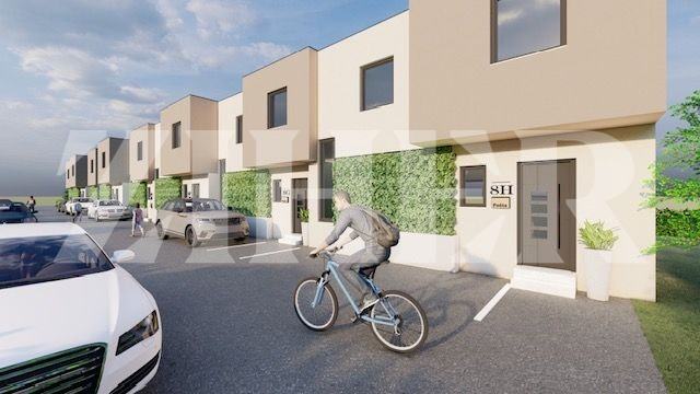 Projekt u fazi ishođenja građevinske dozvole, osam kuća u nizu, svaka sa dva parkirna mjesta i vrtom.