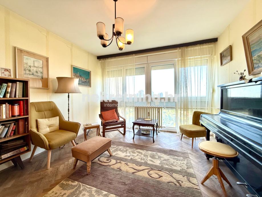 Prodaje se prostran i svijetao četverosobni stan od 107 m² na 13. katu poznate zagrebačke zgrade “Raketa”, smještene u naselju Vrbik (Trnje).